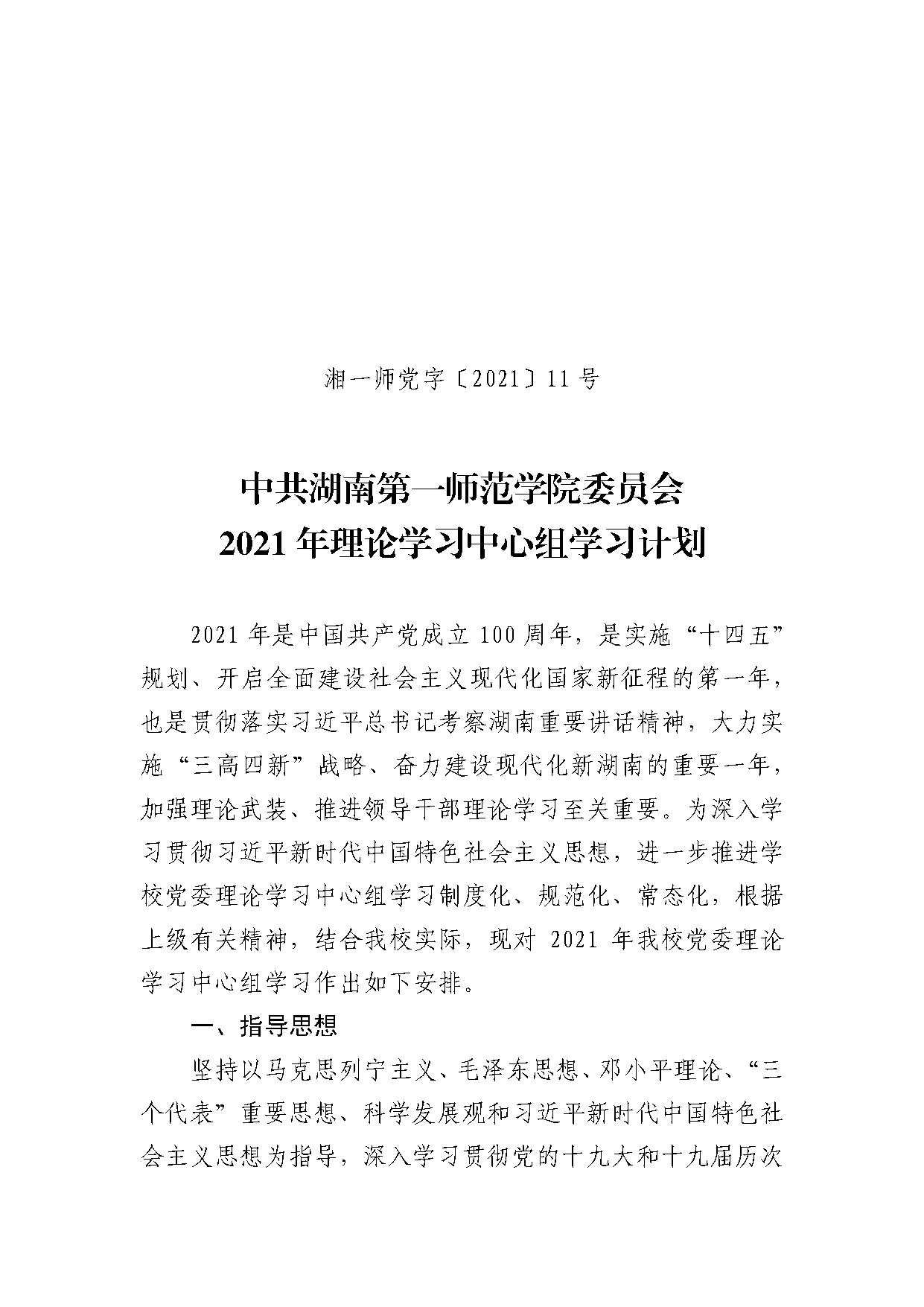 湘一师党字〔2021〕11号 中共bevictor伟德官网委员会2021年理论学习中心组学习计划