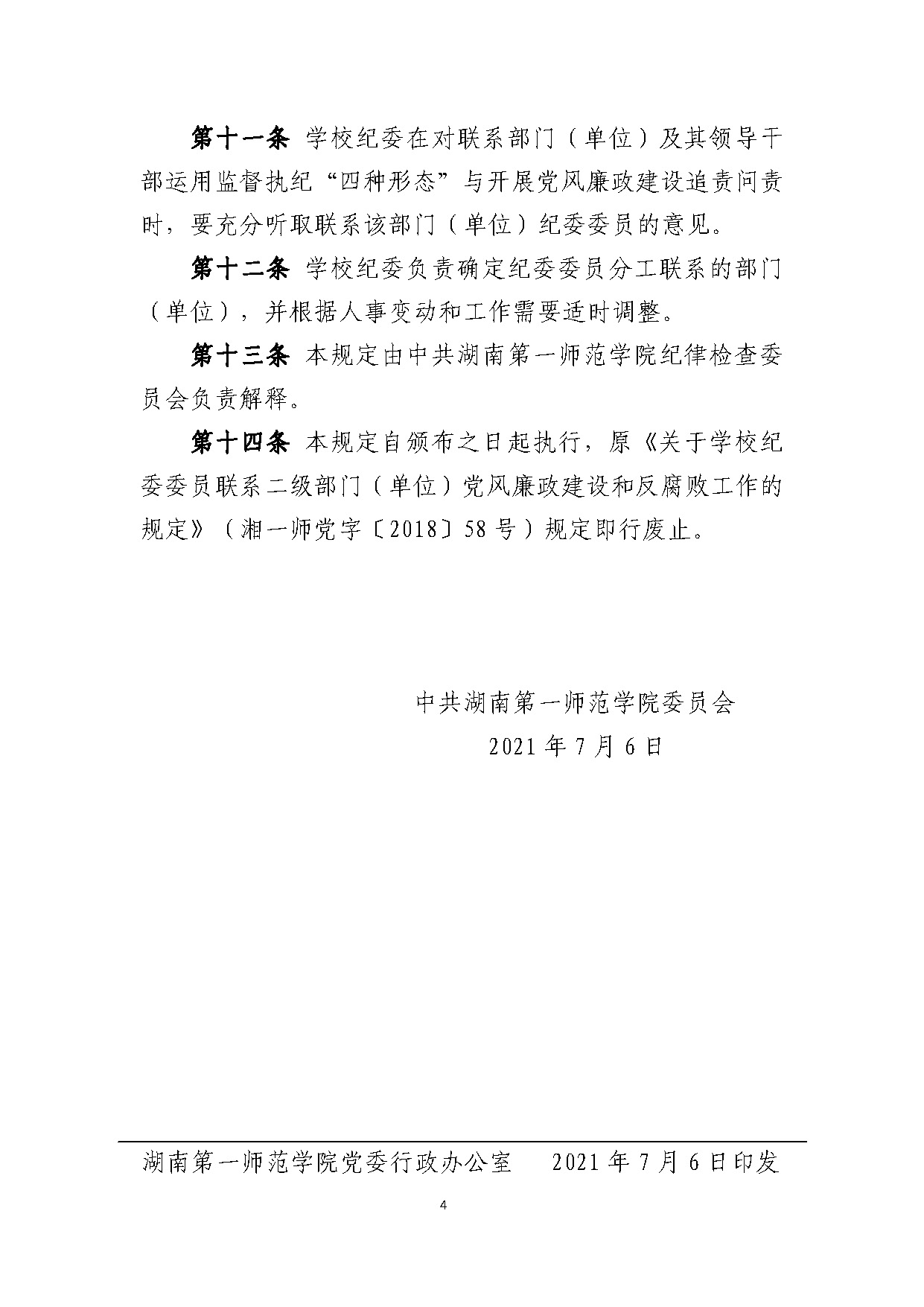 湘一师党字〔2021〕45号 关于纪委委员联系职能部门基层单位制度