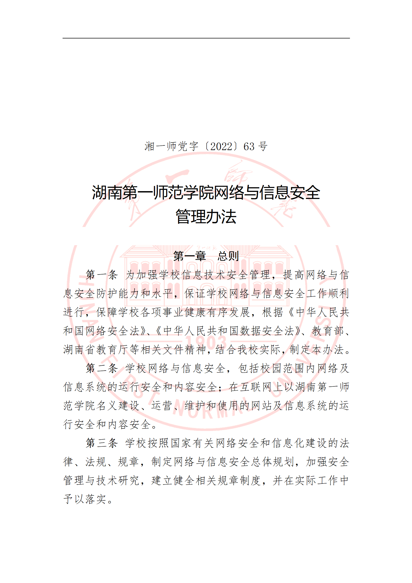 湘一师党字〔2022〕63号 bevictor伟德官网网络与信息安全管理办法