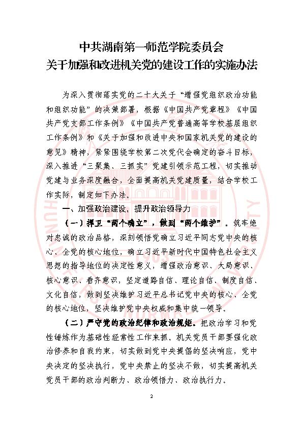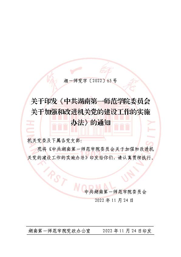 湘一师党字〔2022〕65号 关于印发《中共bevictor伟德官网委员会关于加强和改进机关党的建设工作的实施办法》的通知