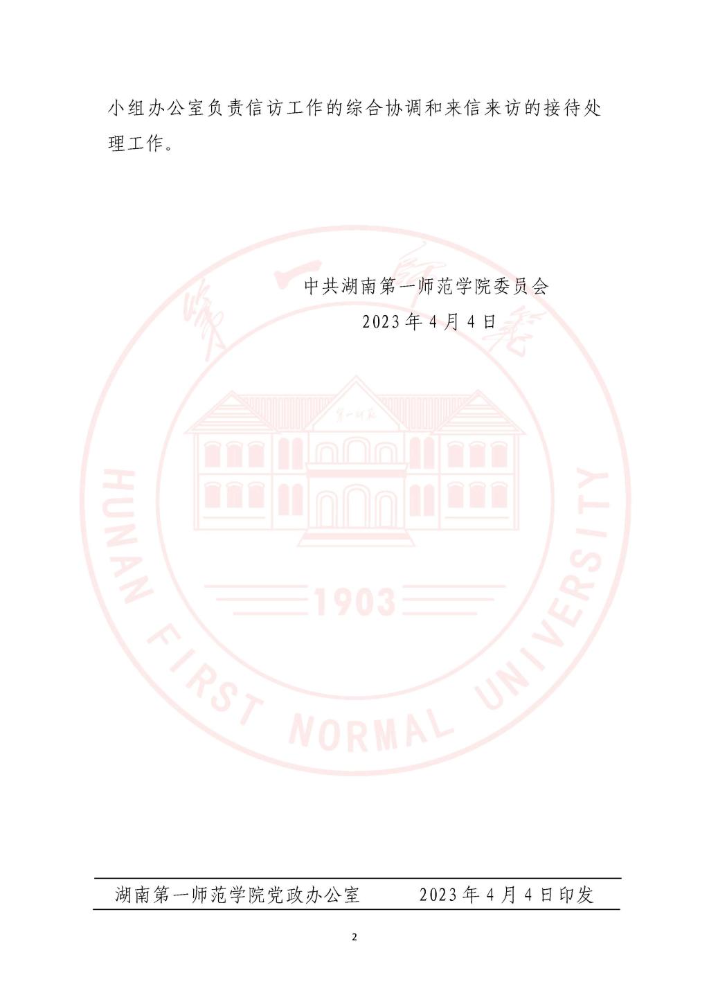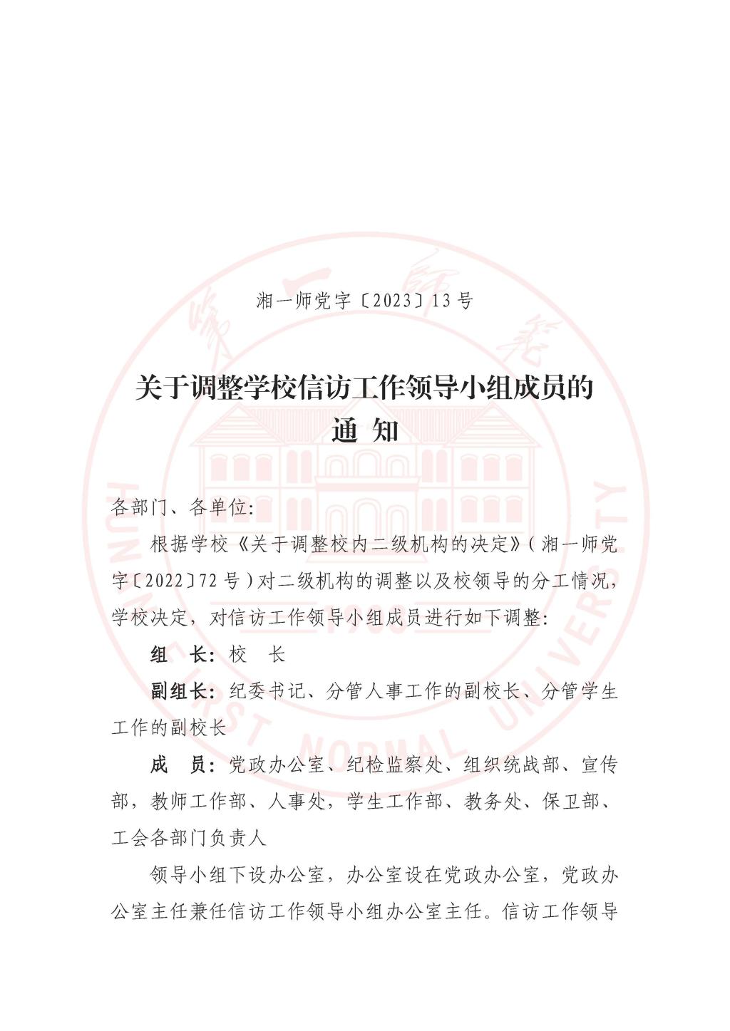 湘一师党字〔2023〕13号 关于调整信访工作领导小组成员的通知
