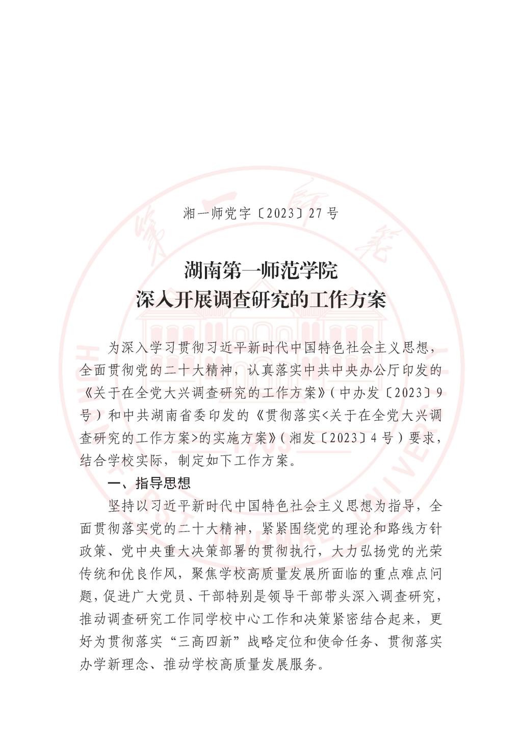 湘一师党字〔2023〕27号 bevictor伟德官网深入开展调查研究的工作方案