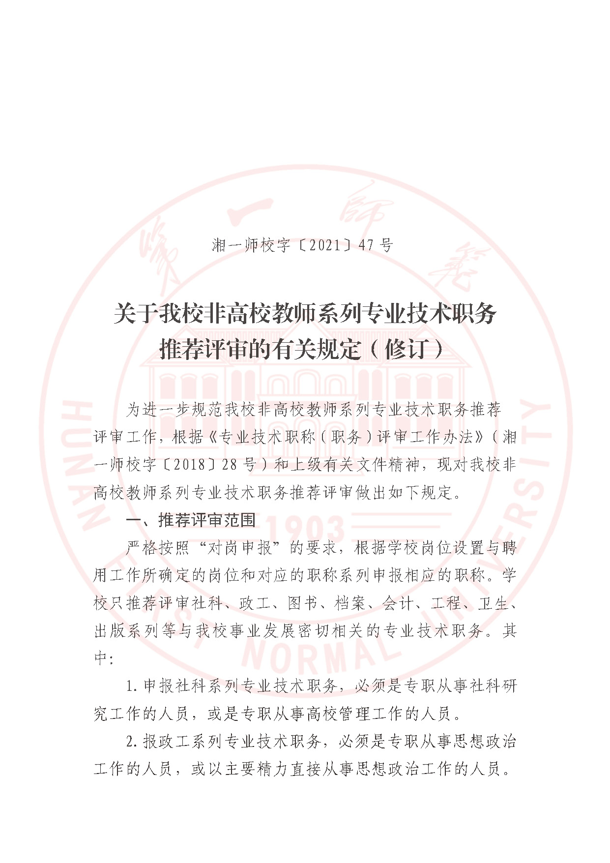 bevictor伟德官网〔2021〕47号 关于我校非高校教师系列专业技术职务推荐评审的有关规定