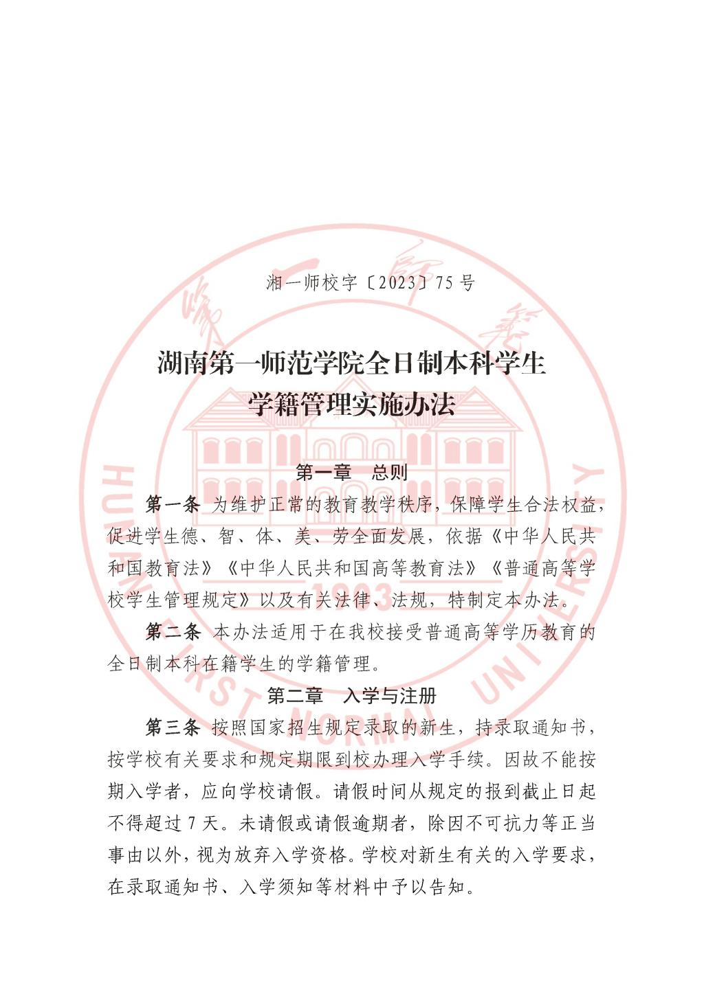 bevictor伟德官网〔2023〕75号 bevictor伟德官网全日制本科学生学籍管理实施办法